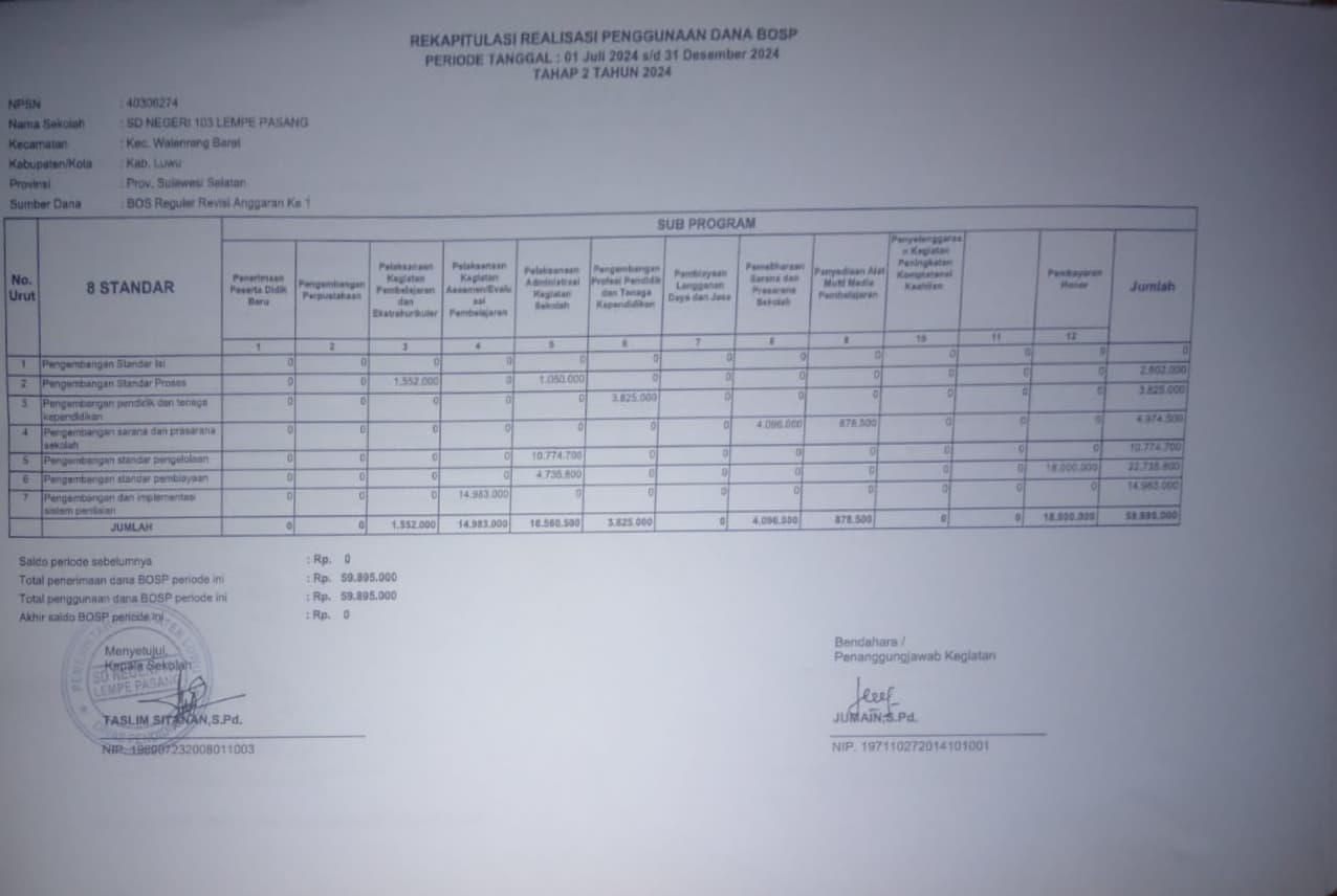 Assalamu’alaikum warahmatullahi wabarakatuh,Salam sejahtera untuk kita semua,Puji syukur kita panjatkan ke hadirat Allah SWT atas limpahan rahmat dan karunia-Nya sehingga SDN 103 Lempe Pasang dapat terus berkembang dan...
